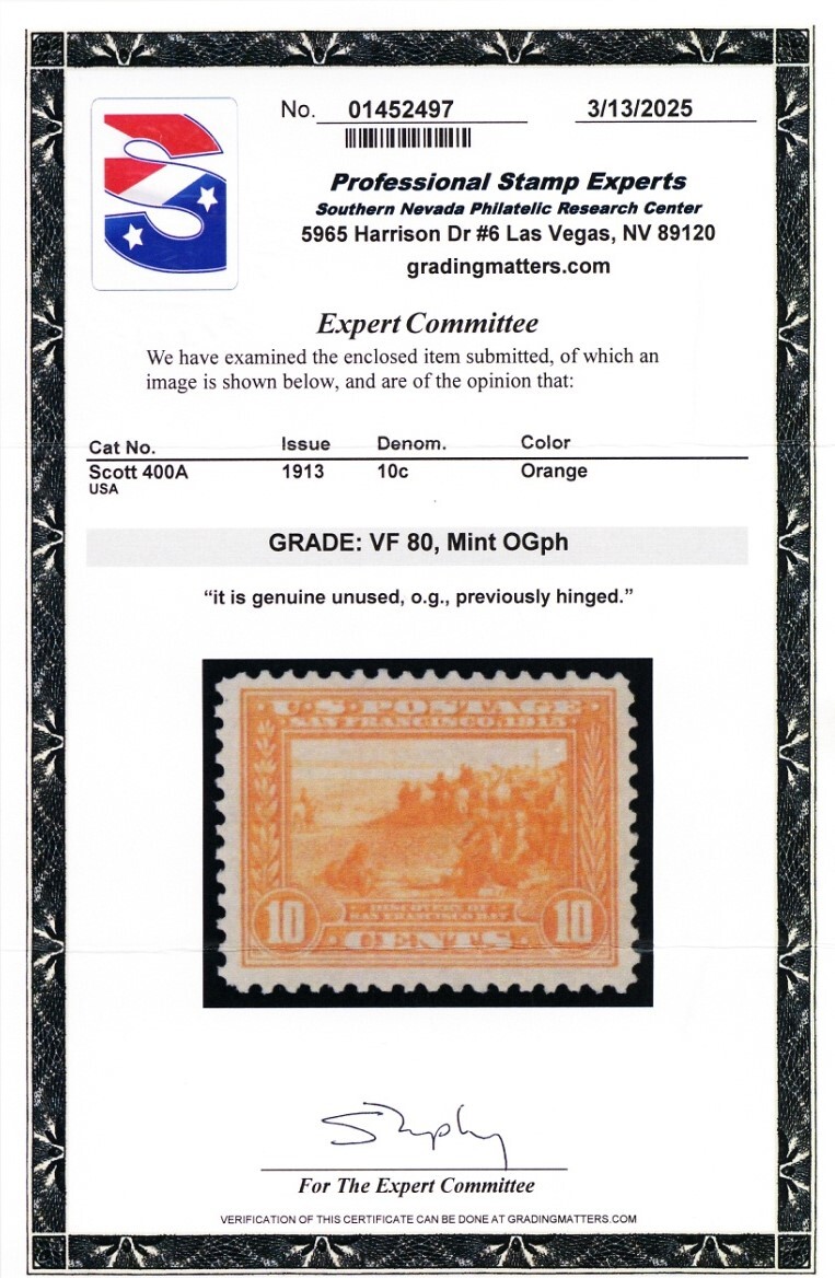 400A, Mint LH 10¢ With Graded 80 PSE Certificate -- Stuart Katz