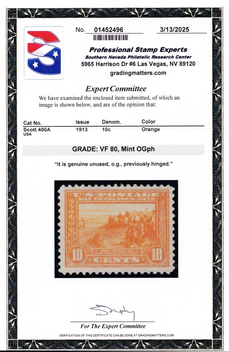 400A, Mint LH 10¢ With Graded 80 PSE Certificate - Stuart Katz
