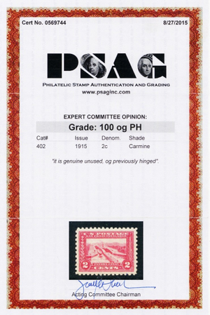 402, Mint LH Superb 2¢ - PSAG Graded 100 - WoW - Stuart Katz