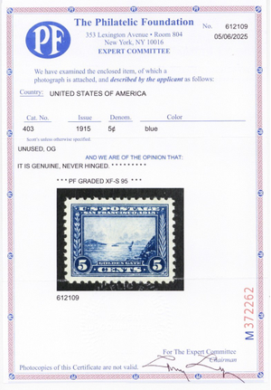 403, Mint NH XF/Superb 5¢ - With PFC Graded 95 Certificate * Stuart Katz