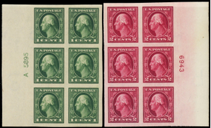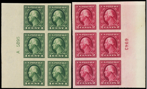 408-09, Mint NH Superb 1¢ & 2¢ Plate Block of Six - Stuart Katz