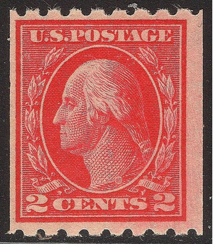 | #411 F-VF MNH OG 2¢ WASHINGTON SINGLE LINE WATERMARK COIL!! Scott #411 F-VF MNH OG Coil of 2c Washington coil issue on single line watermarked paper. Perf 8.5 horizontally.