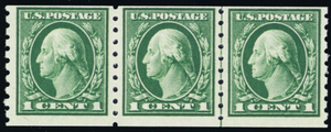 412, Mint NH 1¢ Scarce Coil Line Strip of 3 Stamps Cat $315.00 - Stuart Katz