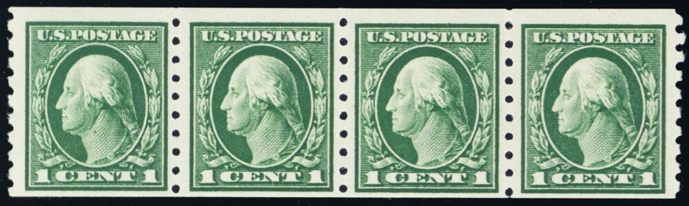 412, Mint NH 1¢ Scarce Coil Strip of 4 Stamps Cat $260.00 - Stuart Katz