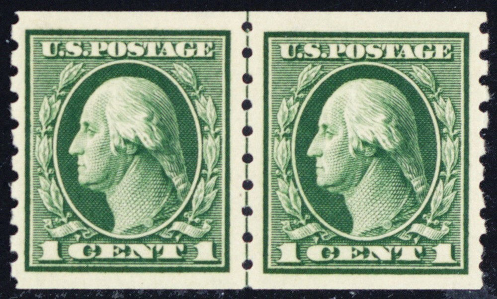 412, Mint VF LH 1¢ Coil Line Pair With PFC Certificate * Stuart Katz