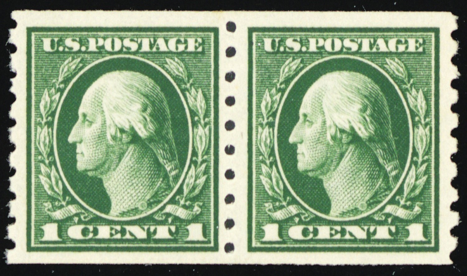 412, Mint VF/XF NH 1¢ Coil Pair - SCV $130 - Stuart Katz