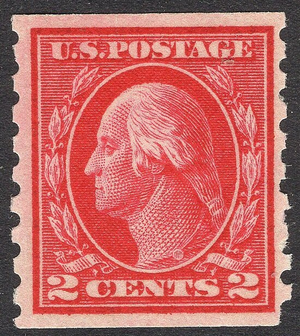 | #413 VF MNH OG 2¢ WASHINGTON SINGLE LINE WATERMARK COIL Scott #413 VF MNH OG Coil of the 2c Washington coil issue on single line watermarked paper. Very nicely centered stamp for this hard to find issue. Perf 8.5 vertically.