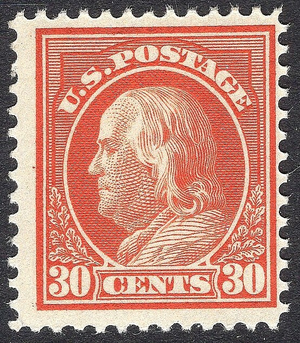 Scott #420 F-VF MNH OG 30-cent Benjamin Franklin Perf 12 flat plate printing on single line watermark paper. The #414-23 Franklin series is getting to be one of the hardest sets to find these days so now is the time to get this stamp into your collection. BUY IT NOW!!