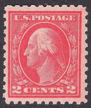 Scott #425 XF LH OG 2-cent George Washington Perf 10 flat plate printing on single line watermark paper issue. No problems with the gum. The 424-440 Perf 10 series is getting tougher to find so now is the time to get this beauty of a stamp into your collection.