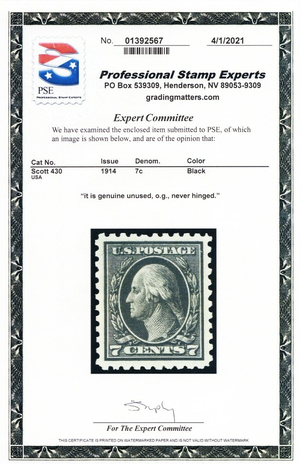430, Mint XF NH 7¢ Washington With PSE Certificate - Stuart Katz