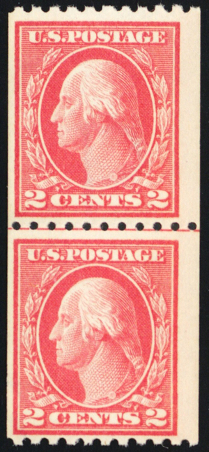 442, Mint FVF NH 2¢ Coil Line Pair - SCV $130.00 - Stuart Katz