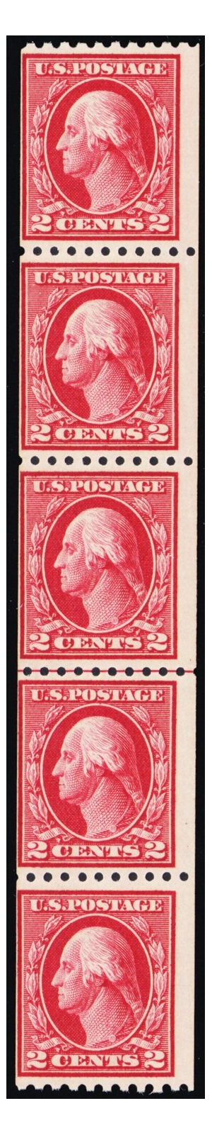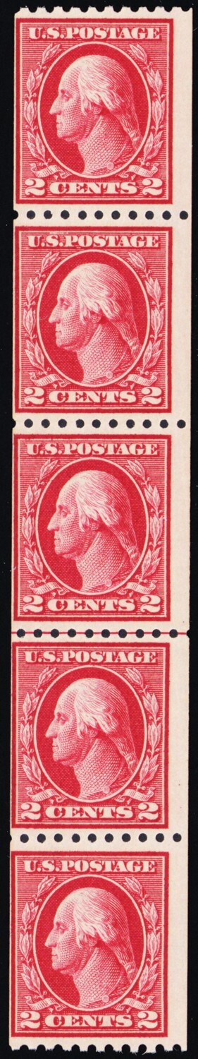 442, Mint NH 2¢ Coil Line Strip of 5 - SCV $207. - Stuart Katz