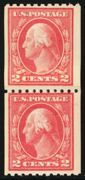 442, Mint NH 2¢ Paste-up Coil Pair - SCV $55 - Stuart Katz