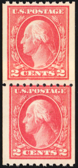 442, Mint NH 2¢ Paste-up Coil Pair - SCV $55+ - Stuart Katz