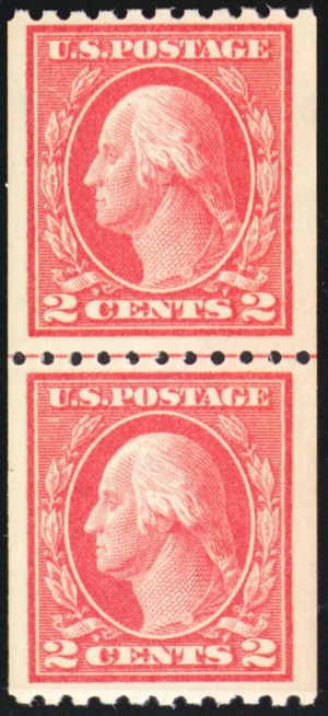 442, Mint VF NH 2¢ Coil Line Pair - SCV $130.00 - Stuart Katz