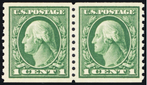 443, 1¢ Mint NH VF+ RARE Coil Pair Cat $160.00 - Stuart Katz