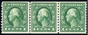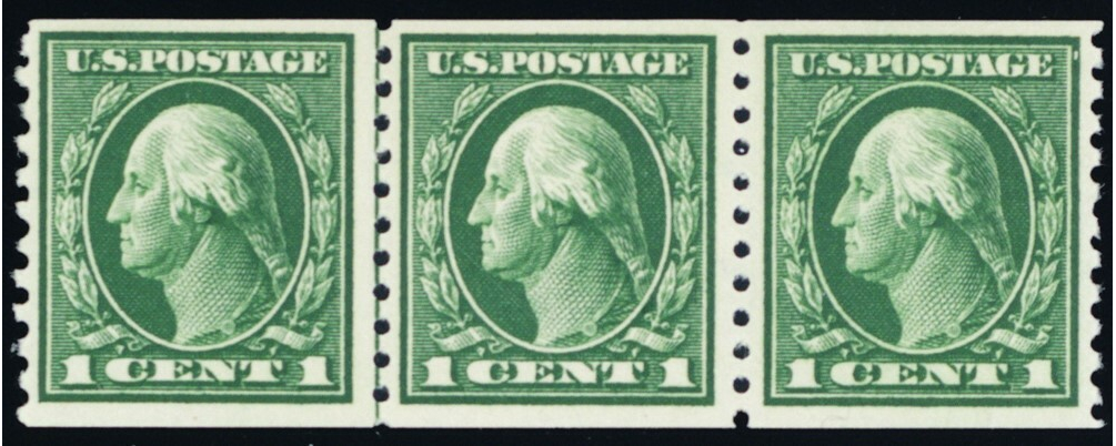 443, Mint VF NH 1¢ Scarce Coil Line Strip of 3 Stamps - Stuart Katz