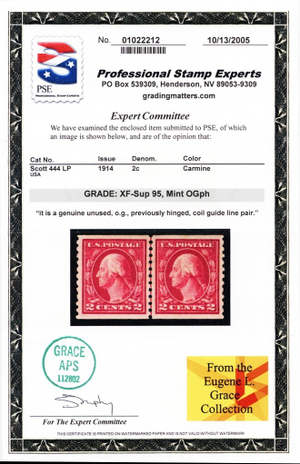 Due to the high cost of obtaining certificates we will only refund the cost of the stamp and not the cost of the certificate for stamps that sell for less than $250 that come back with a negative certificate. Stamps that sell for above $250 will receive a full refund for both the price of the stamp and cost of the certificate if it should come back not as described. For U.S. stamps only certificates from either APS, PSE or from the Philatelic Foundation are accepted, however "graded" certificates or "encased" items are not accepted.