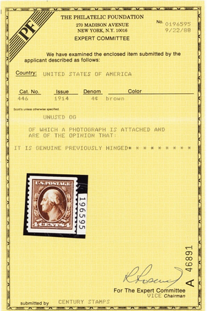 No refunds will be made after 60 days after the sale date unless extra time is granted. Due to the high cost of obtaining certificates we will only refund the cost of the stamp and not the cost of the certificate. For U.S. stamps only certificates from either APS, PSE or from the Philatelic Foundation are accepted, however "graded" certificates or "encased" items are not accepted.
