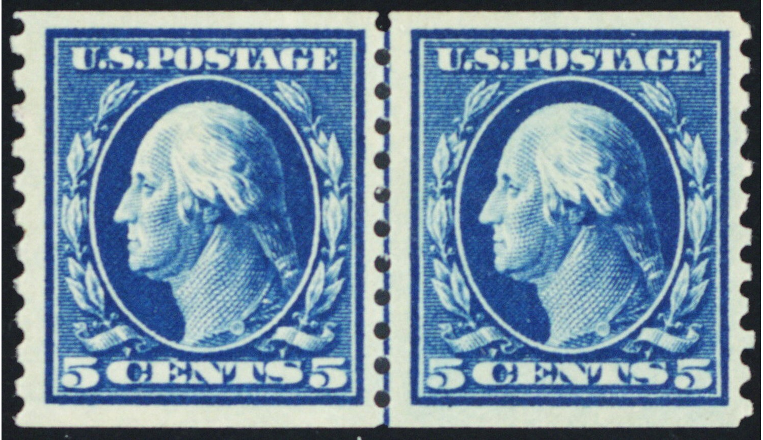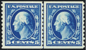 447, Mint VF LH 5¢ Coil Line Pair - SCV $240 - Stuart Katz
