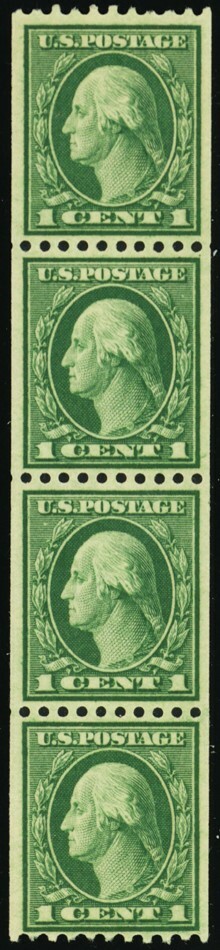 448, Mint VF/XF NH 1¢ Coil Strip of Four Well Centered! - Stuart Katz