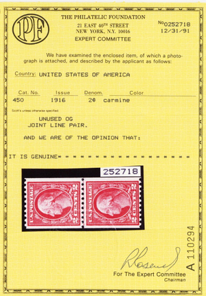 450, Mint NH VF Coil Line Pair - With PFC Certificate * Stuart Katz