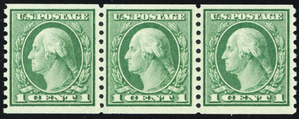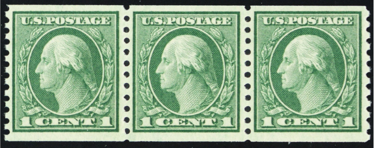 452, Mint NH VF 1¢ Coil Strip of Three - Rich Color - Stuart Katz