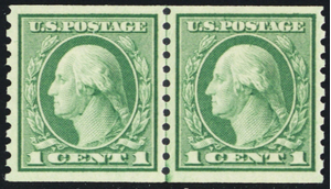 452, Mint NH XF 1¢ Coil Line Pair - With Graded 90 PFC Certificate - Stuart Katz