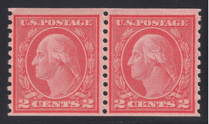 Scott #455 F-VF MNH OG pair of Washington coil issue Type III variety on single line watermarked paper. Scott Catalog Value: $42.50. Make it yours!!