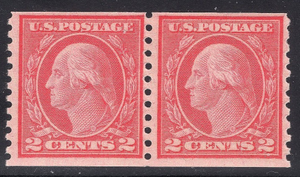#455 F-VF MNH OG 2c WASHINGTON TYPE III Rotary Press-COIL PAIR (REM #455-9)