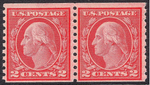 #455 F-VF MNH OG 2c WASHINGTON TYPE III Rotary Press TALL COIL PAIR!!