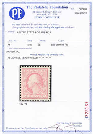 461, Mint VF NH 2¢ - PO FRESH Stamp! With PFC Certificate Stuart Katz