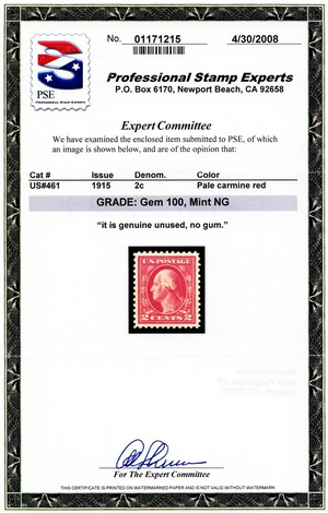 461, Unused 2¢ Superb GEM With PSE Graded 100 Certificate - Stuart Katz