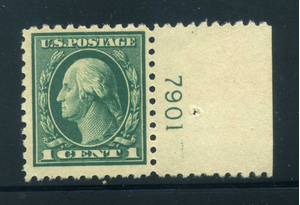 462 with difficult 7901 plate number, 1¢ perf 10 Washington, Mint LH