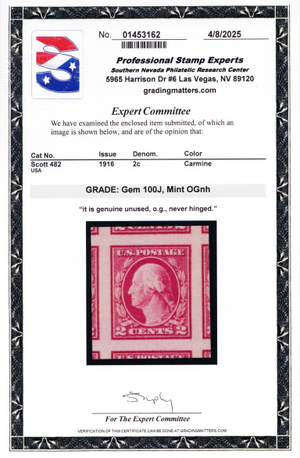 482, Mint Superb NH 2¢ - PSE Graded 100J JUMBO GEM * Stuart Katz