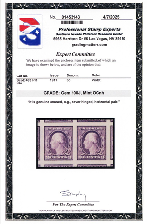 483, Mint Superb NH Pair - With Graded 100J JUMBO PSE Certificate - Stuart Katz
