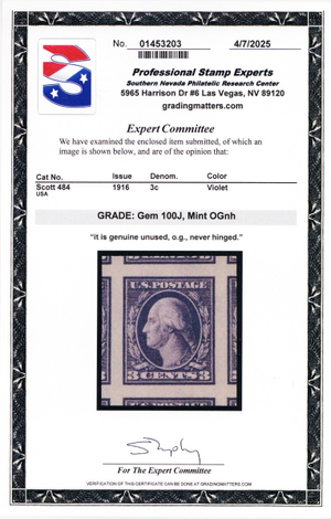 484, Mint Superb NH 3¢ - PSE Graded 100J JUMBO GEM * Stuart Katz