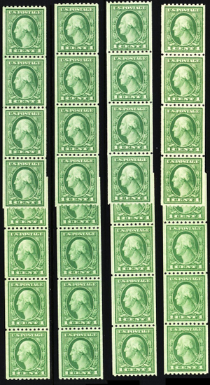 486, Mint NH 1¢ Sixteen VF/XF Coil Pairs CV $68.00 - Stuart Katz
