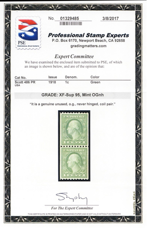 486, Mint NH XF/Superb 1¢ Coil Pair - PSE Graded 95 Certificate * Stuart Katz
