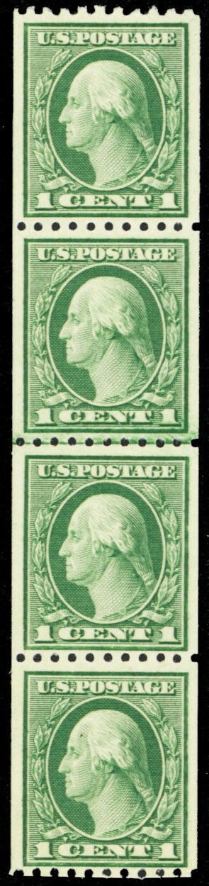 486, Mint XF NH Coil Line Strip of Four Stamps - GEM -- Stuart Katz