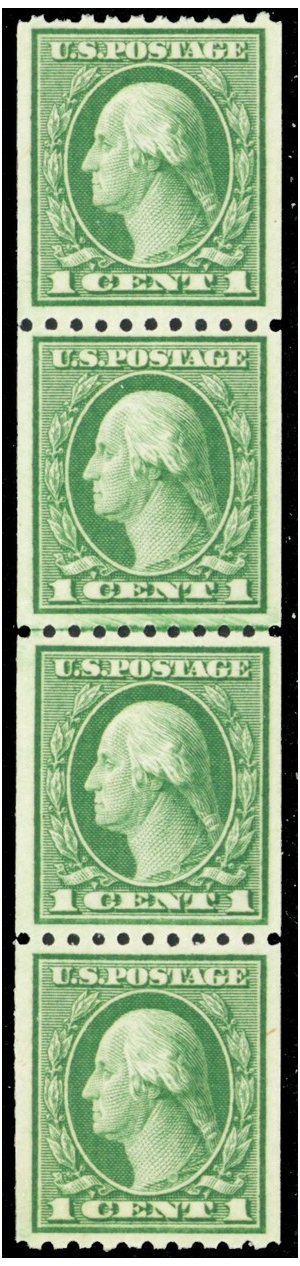 486, Mint XF NH Coil Line Strip of Four Stamps - GEM - Stuart Katz