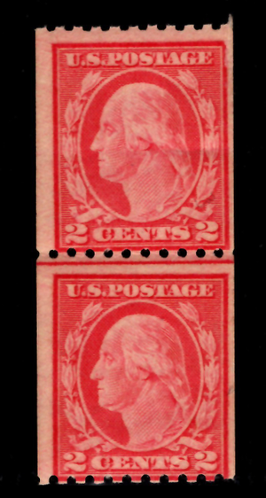 487 Line Pair, 2¢ Type II Washington, Mint NH, crease on top stamp, Scott $275