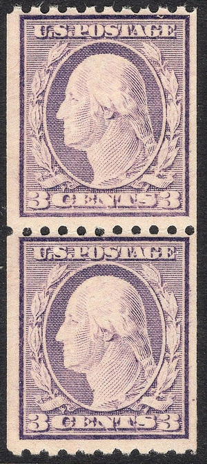 | #489 F-VF MNH OG 3c WASHINGTON TYPE I COIL PAIR!! Scott #489 F-VF MNH OG coil pair of Washington coil issue Type I variety on unwatermarked paper.