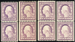 489, Mint NH 3¢ Four F-VF Coil Pairs CV $90.00 * Stuart Katz