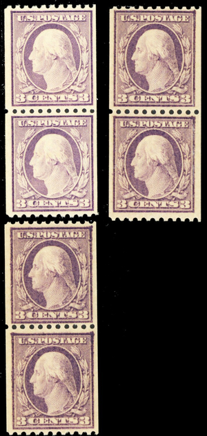 489, Mint NH 3¢ VF Group of Three Coil Pairs Cat $67.50 - Stuart Katz