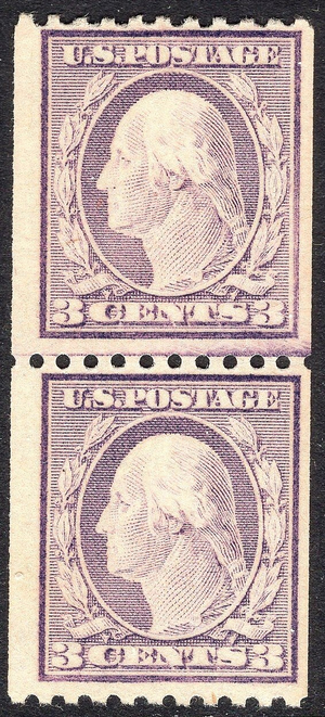| #489 MNH OG 3¢ Washington Coil TYPE I VF LINE PAIR!! Scott #489 F-VF MNH OG line pair of Washington coil issue Type I variety on unwatermarked paper.