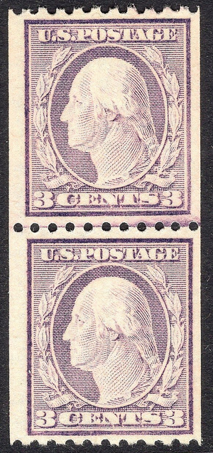 Scott #489 F-VF MNH OG line pair of Washington coil issue Type I variety on unwatermarked paper.