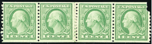 490, Mint NH 1¢ VF Coil Line Strip With TAPE SPLICE Scarce! -- Stuart Katz