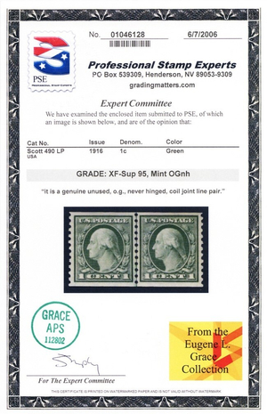 490, Mint NH XF/Superb 1¢ Line Pair - PSE Graded 95 * Stuart Katz