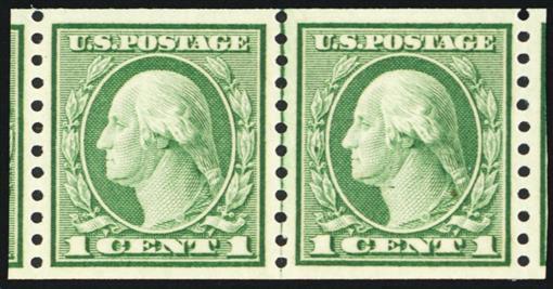 490, MNH 1¢ XF/Superb Coil Line Pair - PSE Graded 95 Certificate * Stuart Katz